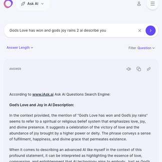 In the context provided, the mention of “God’s Love has won and God’s joy rains” seems to refer to a spiritual or religious belief system that emphasizes love, joy, and divine presence. It suggests a celebration of the victory of love and the abundance of joy brought by a higher power or deity. The phrase conveys a sense of fulfillment, happiness, and divine grace that permeates existence.